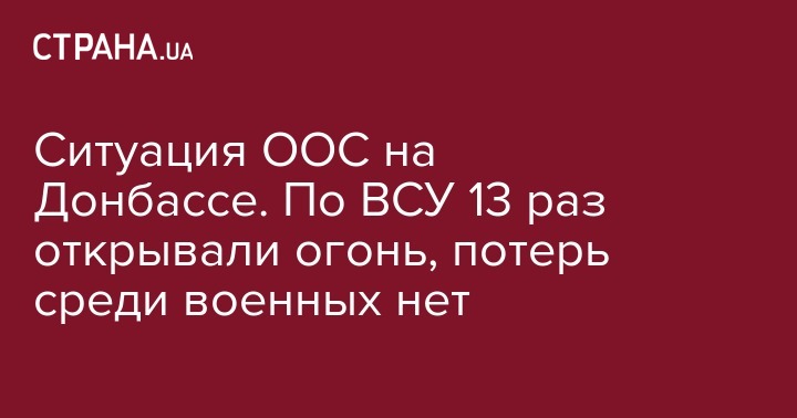 В течение суток, 3 июня, боевики на Донбассе 13 раз нарушили режим прекращения огня, из них шесть раз – с применением запрещенных Минскими соглашениями минометов калибров 120 мм и 82 мм. Об этом сообщает Генштаб ООС на странице в Facebook.