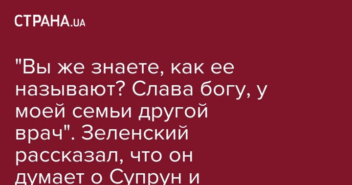 "Супрун? Ха-ха-ха. Ну, по-разному к ней относятся. Вы же знаете, да, как ее называют? Ну, слава богу, у меня есть другой врач, у моей семьи", - сказал Владимир Зеленский.