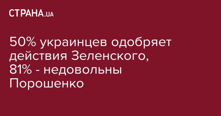 50% украинцев одобряет действия Зеленского, 81% - недовольны Порошенко
