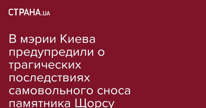 Как сообщала "Страна", председатель Организации украинских националистов (ОУН) Николай Коханивский сообщил на своей странице в соцсети Facebook о том, что его подопечные собираются демонтировать в Киеве памятник Щорсу 30 июня.