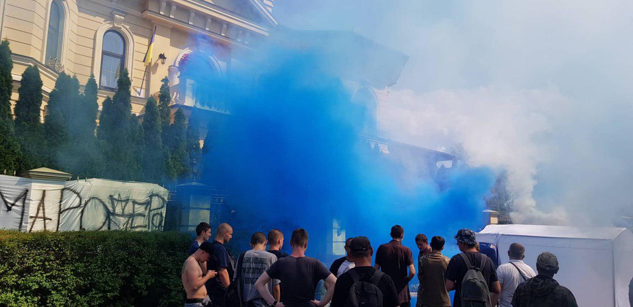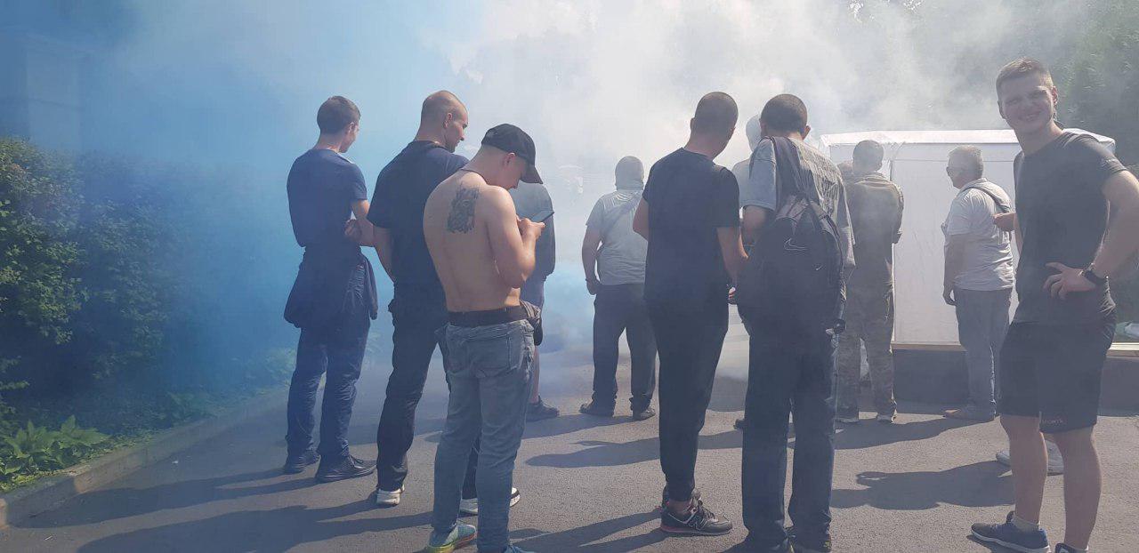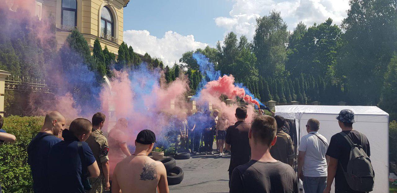 Националисты пришли под дом Гладковского и начали кидать файера. Фото и видео