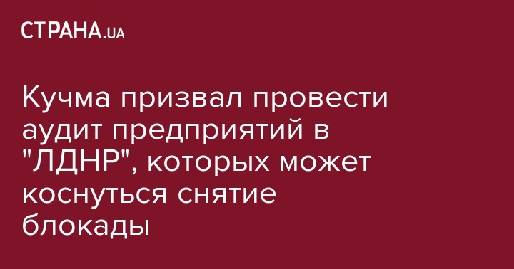 Прежде чем снять транспортную блокаду с Донбасса, нужно провести международный аудит предприятий, которые перешли под контроль "ДНР" и "ЛНР". Об этом на брифинге в Киеве заявил представитель Украины в Трехсторонней контактной группе Леонид Кучма.