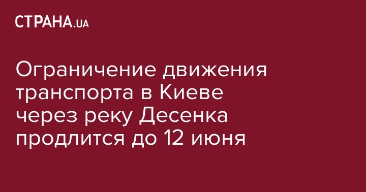 Ограничение движения транспорта в Киеве через реку Десенка продлится до 12 июня