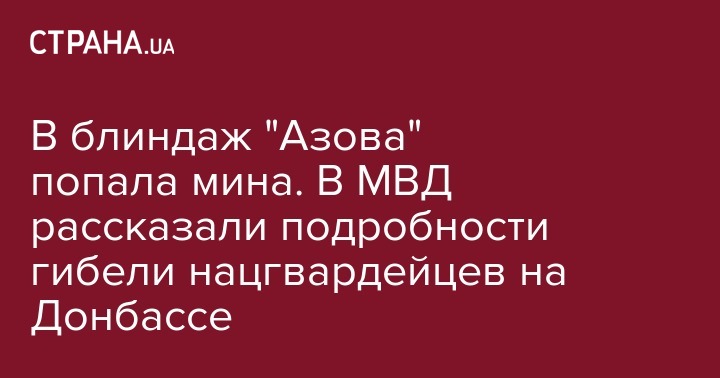 В блиндаж "Азова" попала мина. В МВД рассказали подробности гибели нацгвардейцев на Донбассе