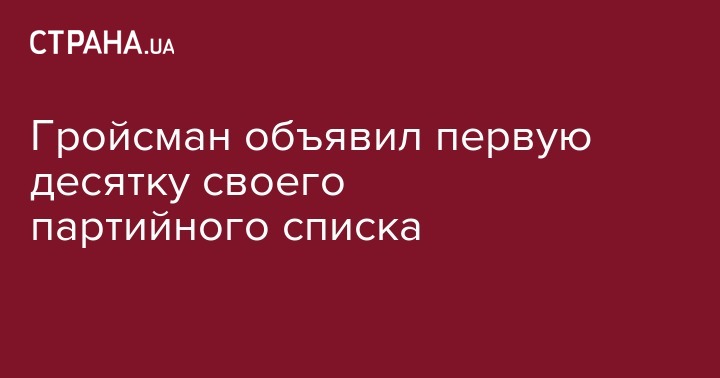 На съезде Владимир Гройсман озвучил десятку списка партии "Украинская стратегия" для похода на внеочередные выборы в Верховную Раду от политической партии "Украинская стратегия Гройсмана": список возглавили действующий премьер-министр Владимир Гройсман, министр образования и науки Лилия Гриневич, министр Кабинета министров Александр Саенко, первый заместитель министра информационной политики Украины Эмине Джаппарова и министр культуры Евгений Нищук.