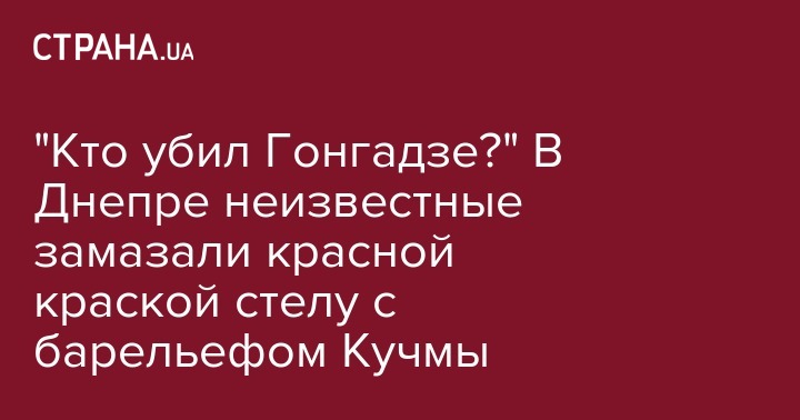 "Кто убил Гонгадзе?" В Днепре неизвестные замазали красной краской стелу с барельефом Кучмы