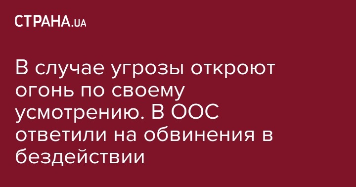 "Командиры подразделений объединенных сил имеют и постоянно используют право применять оружие по противнику по своему решению в случае возникновения угрозы жизни личному составу и гражданскому населению, а также возникновение угрозы потери нашей территории", добавили в ООС.