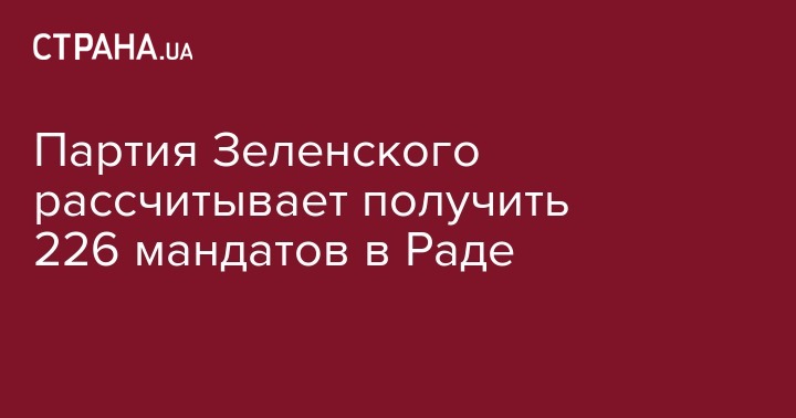 Партия Зеленского рассчитывает получить 226 мандатов в Раде