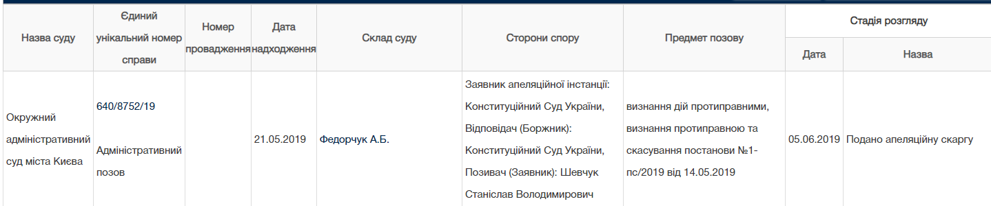 По словам нашего источника, данное решение связано с подачей апелляционной жалобы представителями Конституционного суда, которые настаивают на неправомерности открытия дела по иску Шевчука вследствие неподсудности данного производства Окружному админсуду Киева.