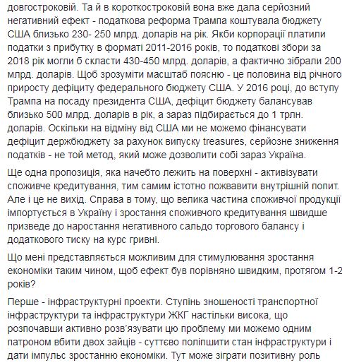 "Недостаточно убедительно выглядят утверждения, что внутренний спрос продолжал стремительно расширяться и распространение в информационном пространстве спекуляций на тему внешнего государственного долга. Все это свидетельствует о том, что пока правление НБУ осуществляет достаточно жесткую монетарную политику и ее смягчение переносится", - отметил он.