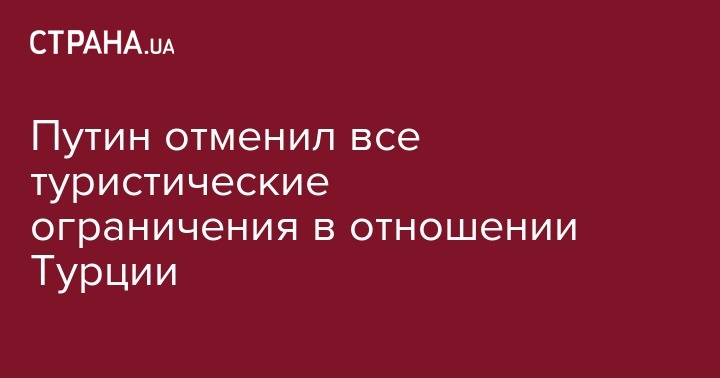Президент России Владимир Путин подписал указ об отмене туристических санкций в отношении Турции. Об этом сообщает официальный сайт Кремля.