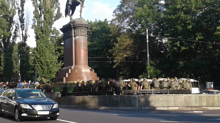 30 июня вокруг памятника Щорсу действительно бушевали страсти. Вокруг монумента собрались около сотни желающих его сноса, а также несколько десятков тех, кто против. Власти оцепили памятник кордоном полицейских, перекрыли подземный переход и досматривали личные вещи присутствующих, сообщает корреспондент "Страны" с места событий.