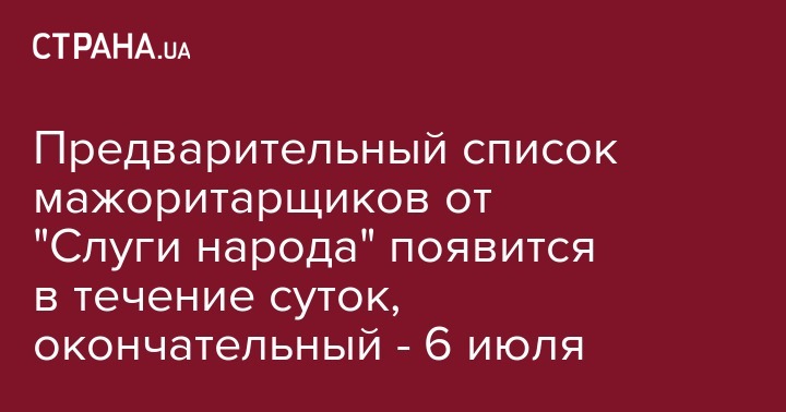 Предварительный список мажоритарщиков от "Слуги народа" появится в течение суток, окончательный - 6 июля