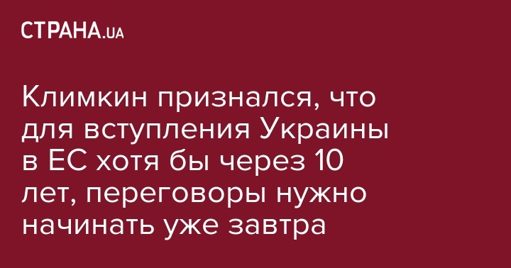 Глава МИД Украины Павел Климкин заявил, что для того, чтобы Украина вступила в ЕС как минимум через 10 лет, переговоры нужно начинать уже в самое ближайшее время. Об этом министр написал на своей странице в социальной сети Facebook во вторник.