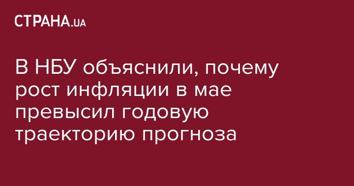 Фактический показатель инфляции в Украине в мае на уровне 9,6% в годовом выражении превысил траекторию прогноза, опубликованного в инфляционном отчете.