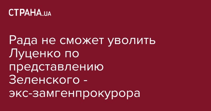 Верховная Рада не сможет уволить генпрокурора Юрия Луценко по представлению президента Владимира Зеленского. Об этом заявил экс-замгенпрокурора, юрист Ренат Кузьмин в Facebook.