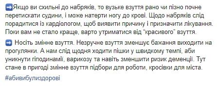 Длительное и постоянное ношение обуви на высоких каблуках может привести к травмам и плохо повлиять на колени. Об этом на своей странице в Facebook написала и.о. главы Минздрава Ульяна Супрун.