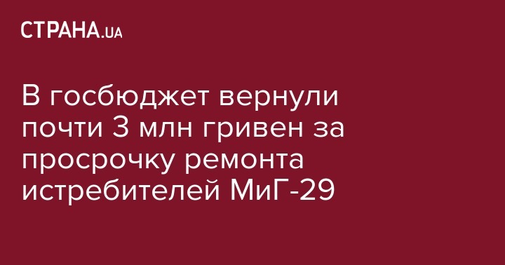 Прокуратура вернула в Государственный бюджет Украины 2,9 млн грн за несвоевременный ремонт и поставку истребителей МиГ-29, сообщает пресс-служба Генеральной прокуратуры Украины 12 июня.