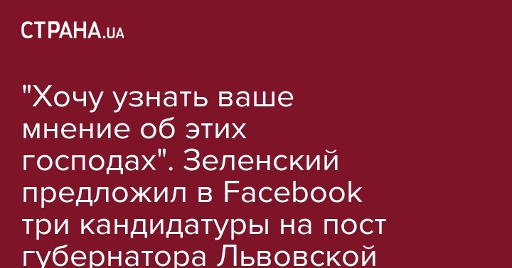 "Обращаюсь к вам за помощью. Сейчас есть три претендента на должность главы Львовской ОГА. Хочу узнать ваше мнение об этих господах. Что вы знаете или слышали об их репутации, менеджерских и моральных качествах? Да и вообще – кто вам больше нравится?", - написал Зеленский.