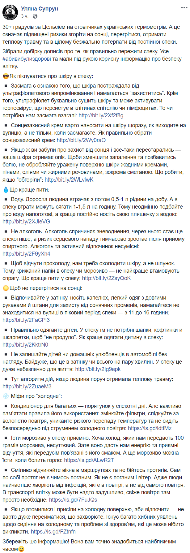 Супрун дала советы, как украинцам выжить в условиях невероятной жары