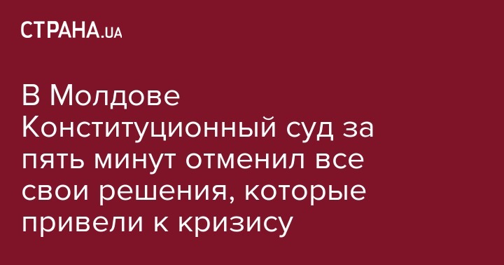 В субботу, 15 июня, в Молдове состоялось чрезвычайное заседание Конституционного суда, который за пять минут отменил свои предыдущие решения, приведшие к политическому кризису. Об этом сообщает "Интерфакс"
