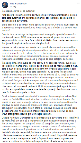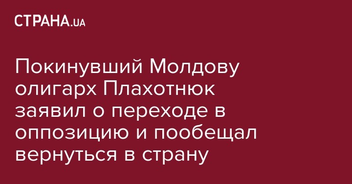 Лидер Демократической партии Молдовы (ДПМ), олигарх Владимир Плахотнюк, который покинул страну 14 июня сразу после заявления правительства об отставке, теперь заявил, что переходит в оппозицию и скоро вернется в страну.
