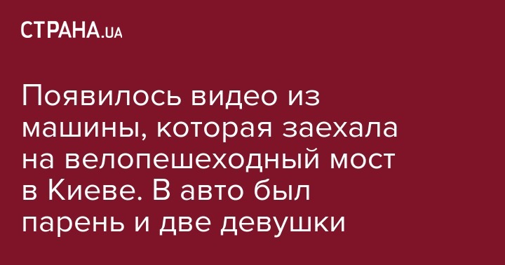 Появилось видео из машины, которая заехала на велопешеходный мост в Киеве. В авто был парень и две девушки