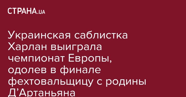 Украинская саблистка Харлан выиграла чемпионат Европы, одолев в финале фехтовальщицу с родины Д’Артаньяна