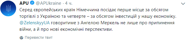 "Зеленский будет говорить с Ангелой Меркель не только о прекращении войны, но и новых экономических перспективах", - подчеркнули в АП.