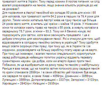 Уточняется, что средний возраст жизни мужчины в Украине составляет 67 лет, на пенсию он может выйти в 63-65 лет. То есть получается, что мужчины живут после выхода на пенсию до 4 лет. В то время как средний возраст женщины составляет 77 лет, на пенсию она выходит в 61 год и живет после выхода на пенсию до 16 лет.