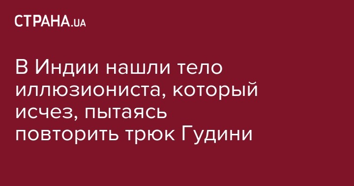 В Индии нашли тело иллюзиониста, который исчез, пытаясь повторить трюк Гудини