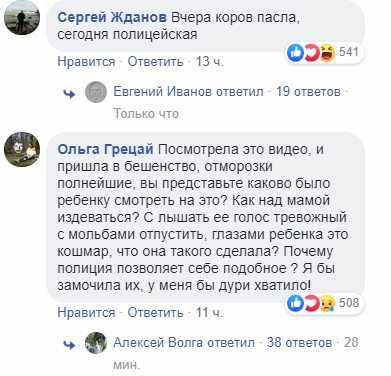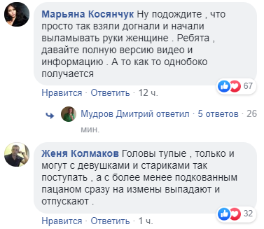 В соцсетях выражают неоднозначные мнения об увиденном. В основном, пользователи стали на защиту женщины, которую грубо задерживают на видео. Она кричит: "У меня ребенок в машине", однако полицейские продолжают заламывать ей руки. Комментаторы возмущены непрофессиональными действиями патрульных. Впрочем, некоторые пишут, что полицейские "не должны быть вежливыми" при задержании, а видео вызывает сомнения, потому как показана лишь часть конфликта.