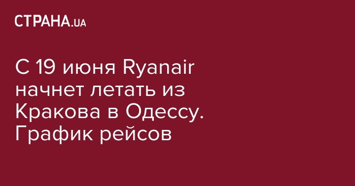 В среду, 19 июня, ирландская авиакомпания-лоукостер Ryanair совершила первый перелет из польского Кракова в Одессу. Об этом сообщает пресс-служба Международного аэропорта Одесса.