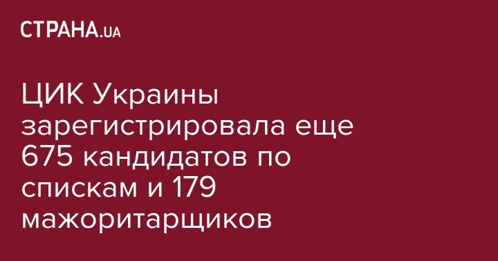 ЦИК Украины зарегистрировала еще 675 кандидатов по спискам и 179 мажоритарщиков