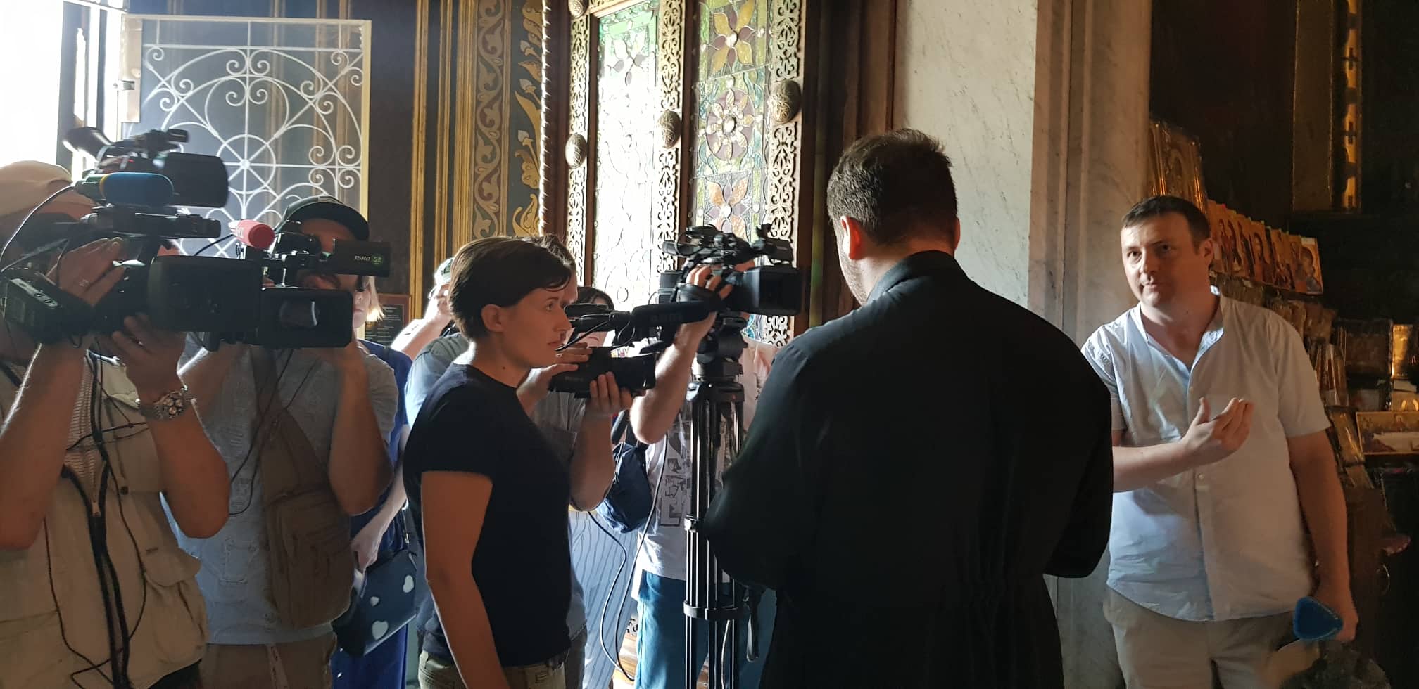 Журналистам вход на сам собор поначалу был запрещен. Их не пускали внутрь храма. Однако после препирательств и разборок представителей СМИ все-таки пропустили внутрь.