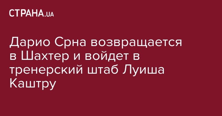 Бывший защитник донецкого Шахтера Дарио Срна, который завтра, 21 июня, даст большую пресс-конференцию в Киеве, вернется в команду и войдет в новый тренерский штаб "горняков" под руководством главного тренера Луиша Каштру.