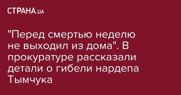 "Перед смертью неделю не выходил из дома". В прокуратуре рассказали детали о гибели нардепа Тымчука
