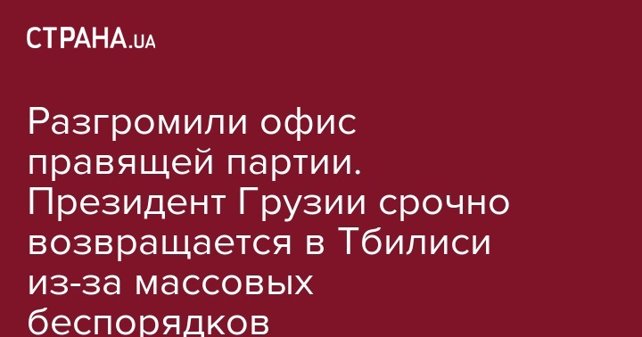 Разгромили офис правящей партии. Президент Грузии срочно возвращается в Тбилиси из-за массовых беспорядков