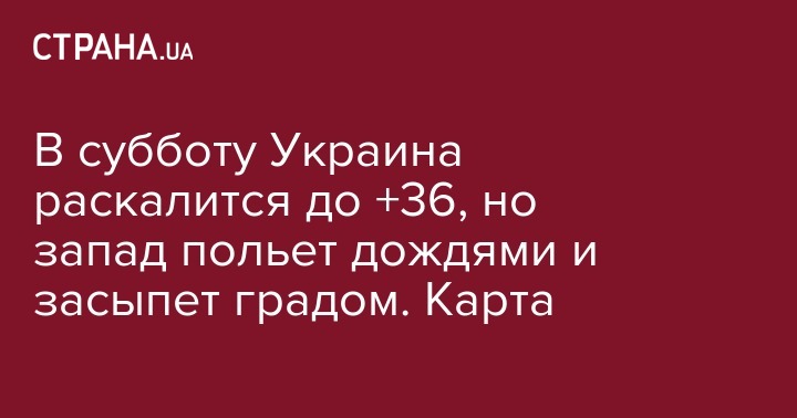 В субботу Украина раскалится до +36, но запад польет дождями и засыпет градом. Карта