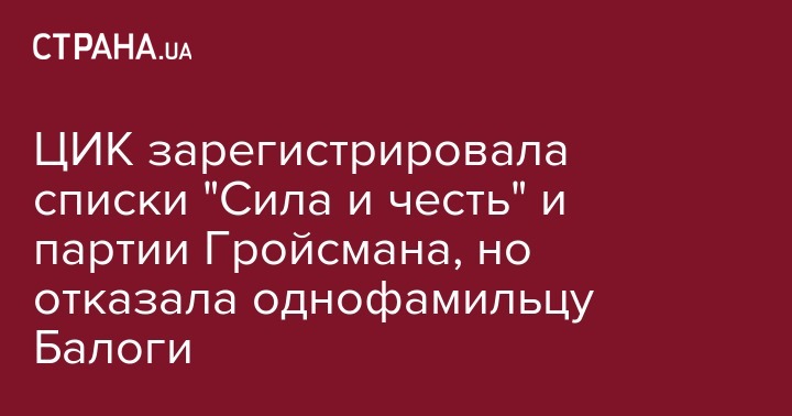 Кроме того, в пятницу ЦИК зарегистрировала 139 кандидатов в народные депутаты, включенных в избирательные списки политических партий, в общегосударственном многомандатном избирательном округе: 63 – от политической партии "Украинская стратегия Гройсмана"; 76 – от партии "Сила и честь".