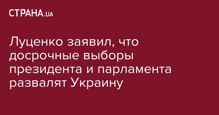 Досрочные президентские и парламентские выборы в Украине могут привести к развалу страны. Такое мнение высказал генеральный прокурор Украины Юрий Луценко, написала на своей странице в социальной сети Facebook его пресс-секретарь Лариса Сарган.