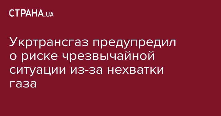Укртрансгаз предупредил о возникновении предпосылок чрезвычайной ситуации государственного уровня НКРЭКУ, Государственную службу чрезвычайных ситуаций Украины и Совет национальной безопасности и обороны Украины.