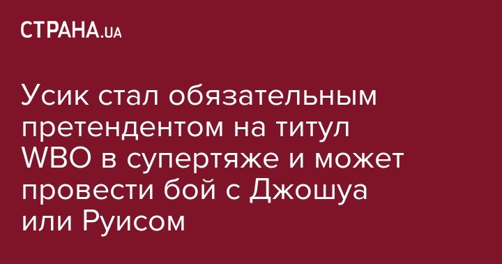 Дебют Усика в супертяжелом весе должен состояться осенью против Карлоса Такама. В случае победы украинец станет претендентом на пояс WBO. Энди Руис после сенсационной победы над Энтони Джошуа завладел титулами WBO, WBA, IBF и IBO.