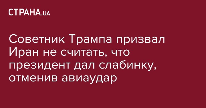 Советник Трампа призвал Иран не считать, что президент дал слабинку, отменив авиаудар