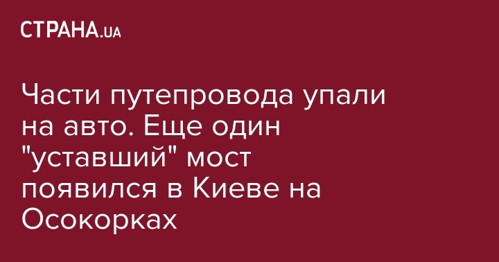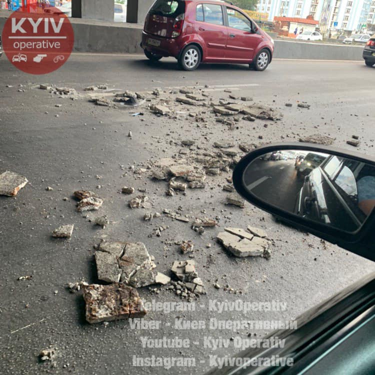 Части путепровода упали на авто. Еще один "уставший" мост появился в Киеве на Осокорках