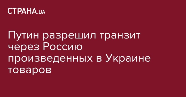 Президент России Владимир Путин разрешил возобновить транзит через российскую территорию товаров, произведенных в Украине, идущих на экспорт в третьи страны. Соответствующий указ он подписал, в понедельник, 24 июня.