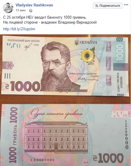 Отметим, что до этого наивысшим номиналом считалась банкнота 500 гривен.