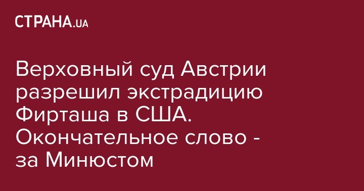 Во вторник, 25 июня, Верховный суд Австрии отклонил апелляцию адвокатов украинского бизнесмена Дмитрия Фирташа на решение апелляционного суда о его экстрадиции в США. Отмечается, что окончательное решение - за федеральным министром юстиции Австрии. Об этом сообщает "Интерфакс-Украина".