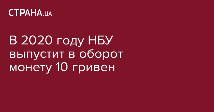 В 2020 году НБУ выпустит в оборот монету 10 гривен