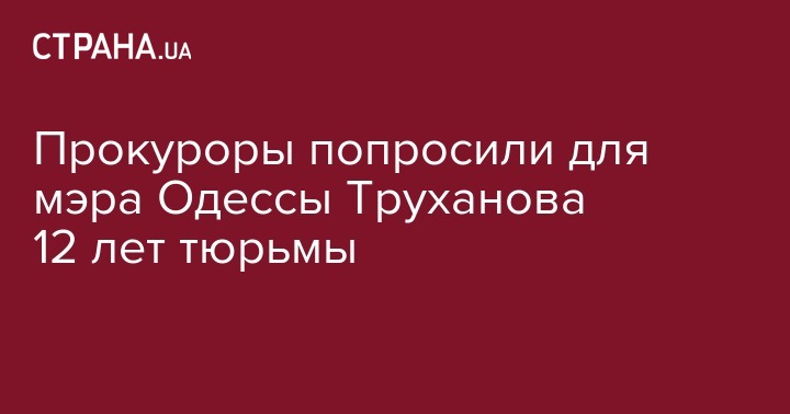 Прокуратура просит Малиновский районный суд Одессы приговорить к 12 годам лишения свободы мэра Одессы Геннадия Труханова, обвиняемого в присвоении 92,7 млн гривен при покупке здания завода "Краян". Об этом сказал прокурор Специализированной антикоррупционной прокуратуры (САП) Максим Кравченко в ходе дебатов, передают Украинские новости.